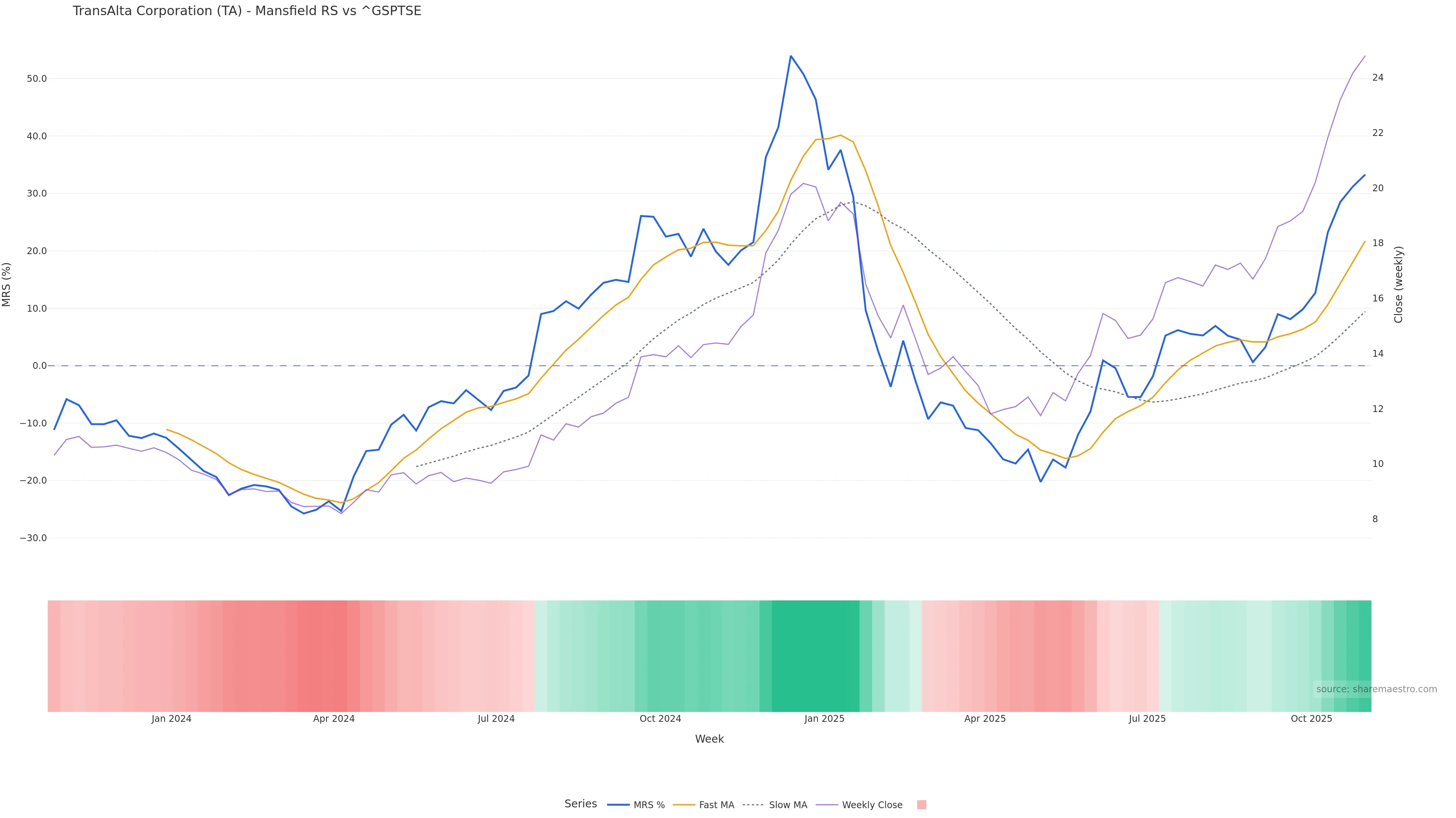 Mansfield RS vs ^GSPTSE is positive and rising.