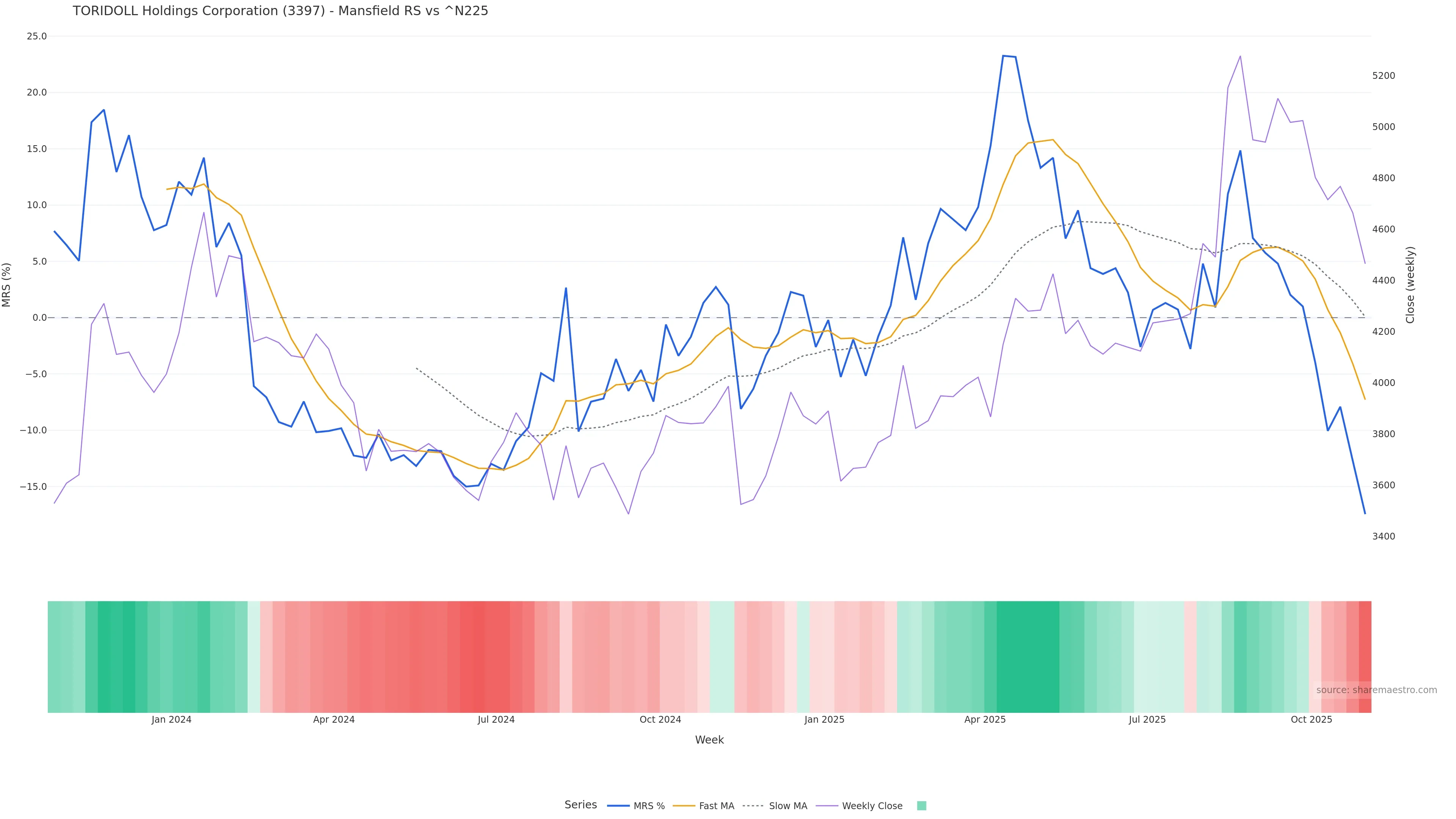 This week: relative strength is fading. In practical terms: backdrop leans corrective; rallies face a higher bar for sustainability; bearish divergence lowers the quality of upside attempts.