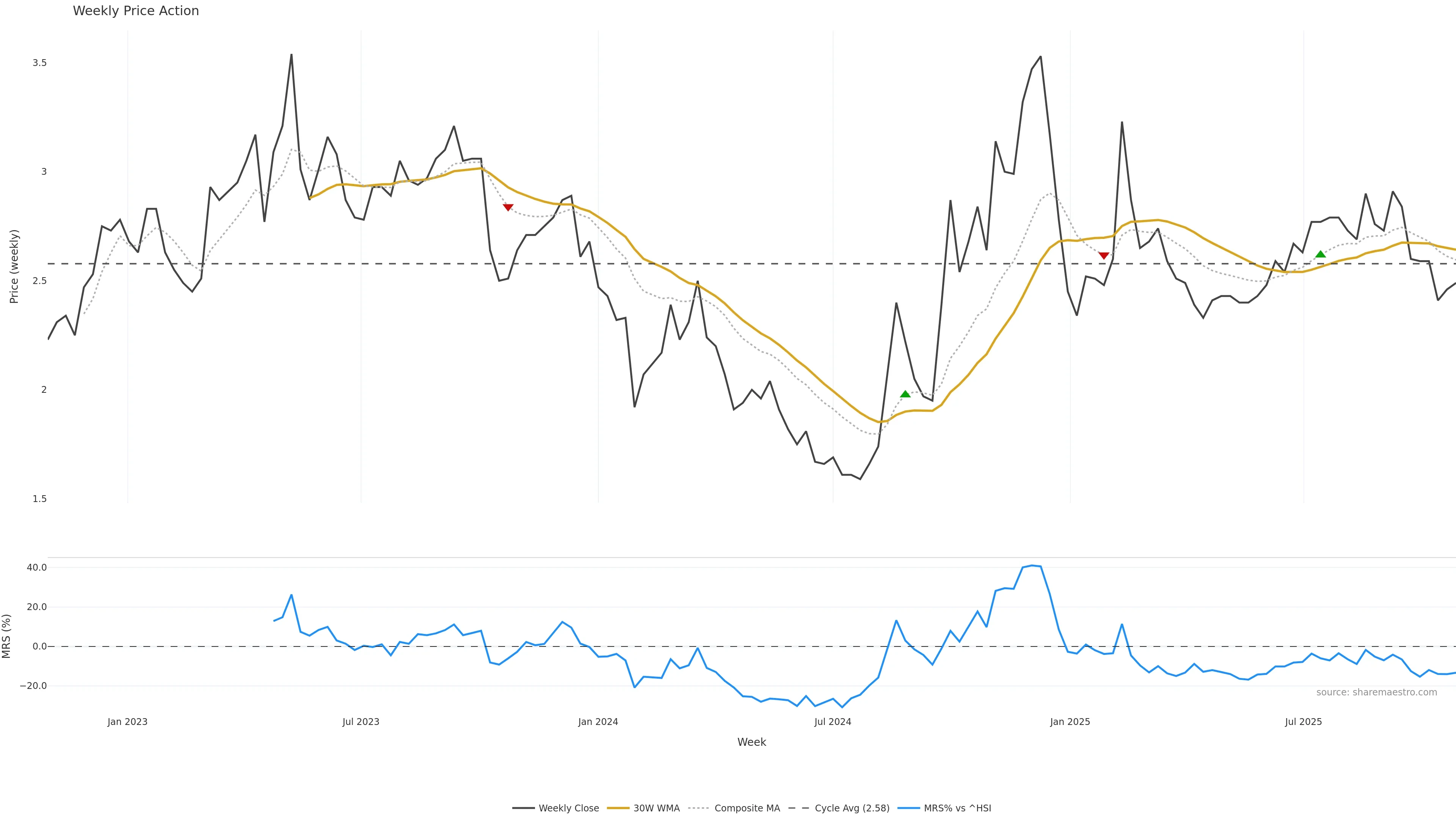 Mansfield RS vs ^HSI is negative and weakening. Avoid unless a reversal forms. In essence this reflects Mansfield relative strength trend with a bearish tilt.