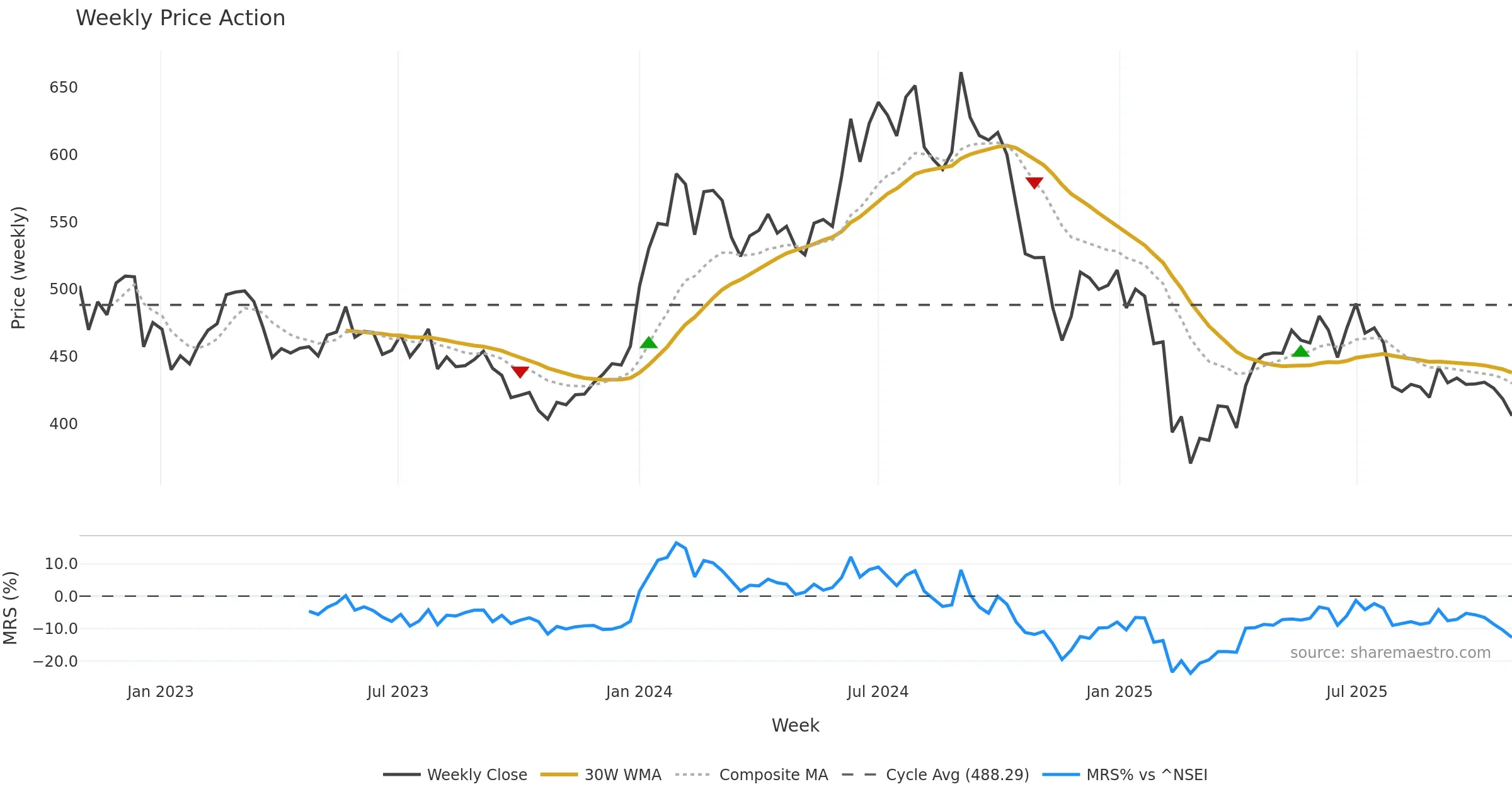 Mansfield RS vs ^NSEI is negative and weakening.