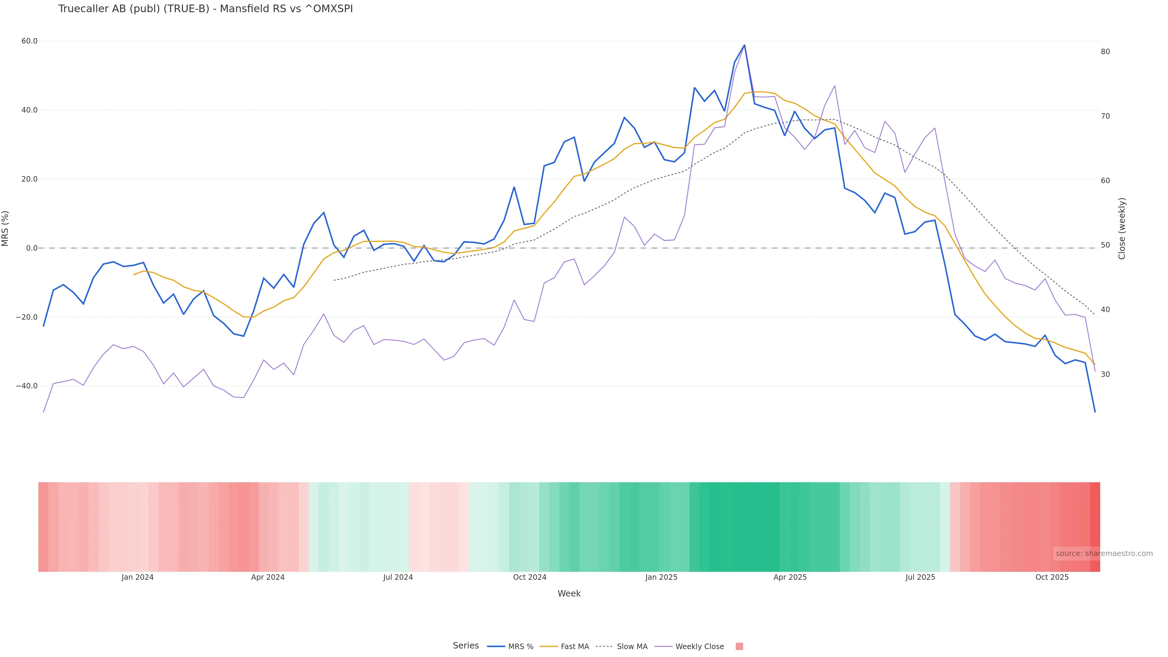 This week: relative strength is fading. In practical terms: backdrop leans corrective; rallies face a higher bar for sustainability; bearish divergence lowers the quality of upside attempts.