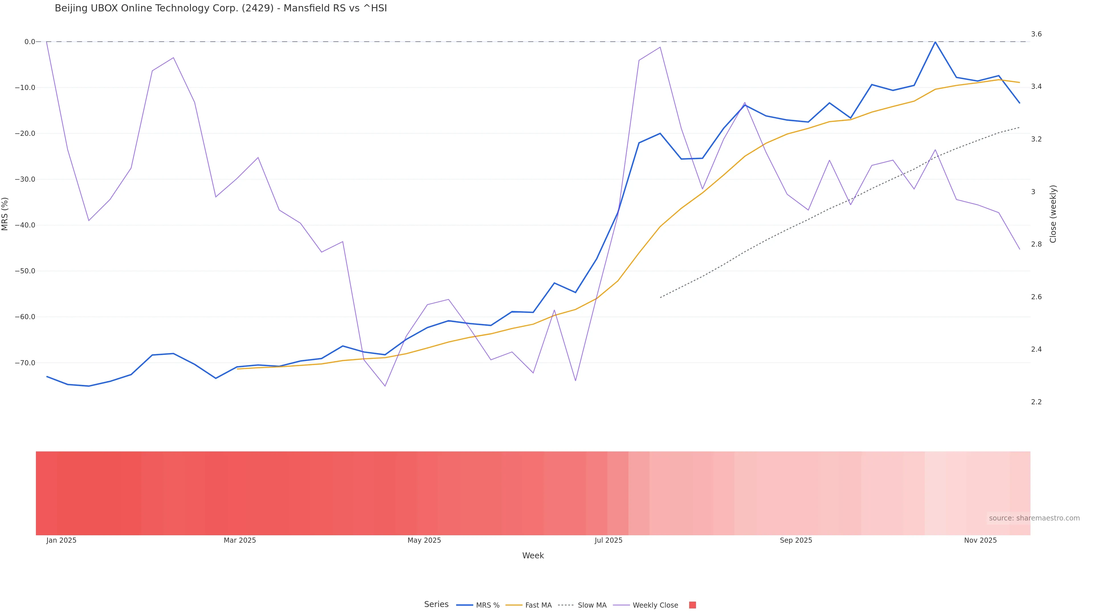 This week: relative strength is fading. In practical terms: backdrop leans corrective; rallies face a higher bar for sustainability; bearish divergence lowers the quality of upside attempts.