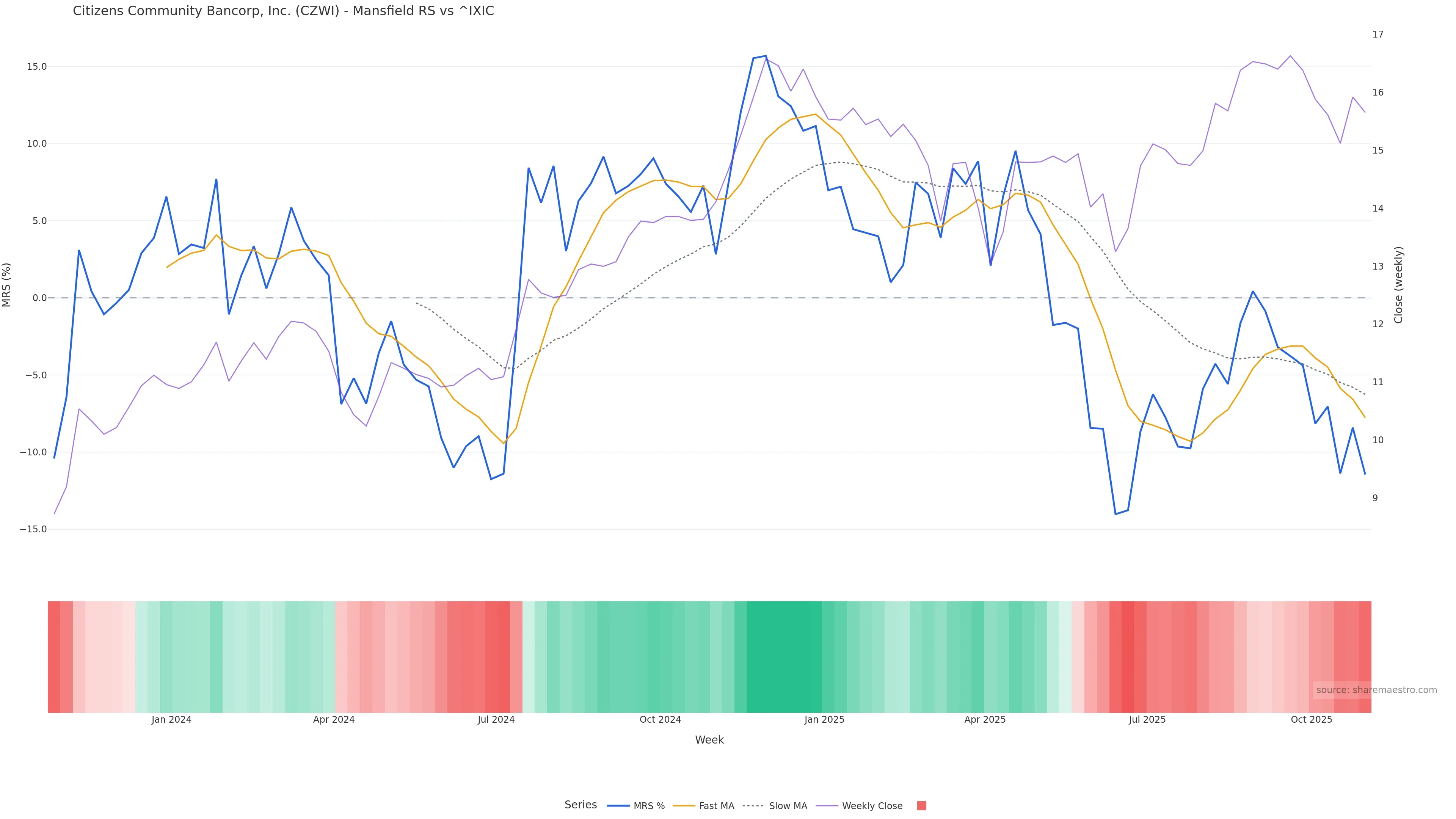 This week: relative strength is fading. In practical terms: backdrop leans corrective; rallies face a higher bar for sustainability; bearish divergence lowers the quality of upside attempts.