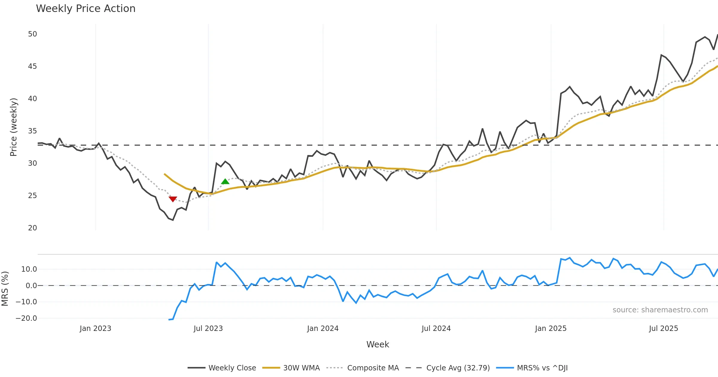 Distance to 30w +20.16%; to 50w +28.24%. Risk: a close back below 30w would weaken posture.