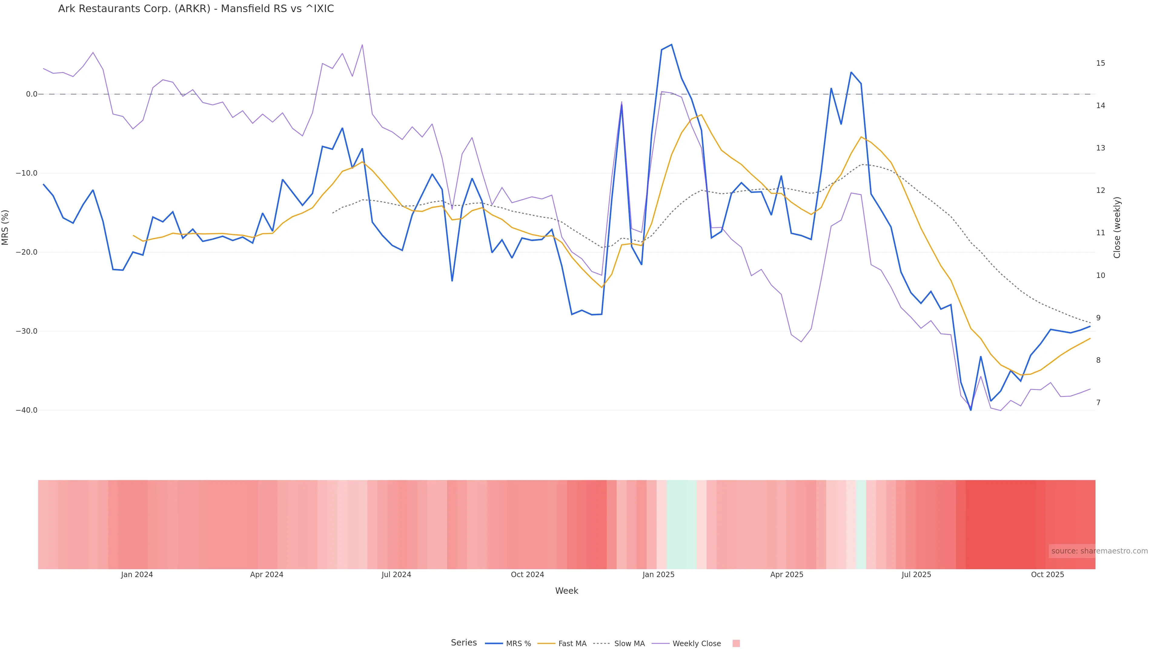 Last week closed flat (0.00%), and over the last 8 weeks price is up (5.78%) with a rising slope (0.267%/w). Ranges are compressing (current 0.00× mean; 50th pct; realised vol ≈ 2.79%). Price spends time in the middle band (rising), participation is below typical with a selling-tilt bias (z -4.97), money flow is falling, and posture is below 30w & 50w (drawdown -2.01%). Balance is mixed; watch participation shifts and behaviour at the 30-week average.