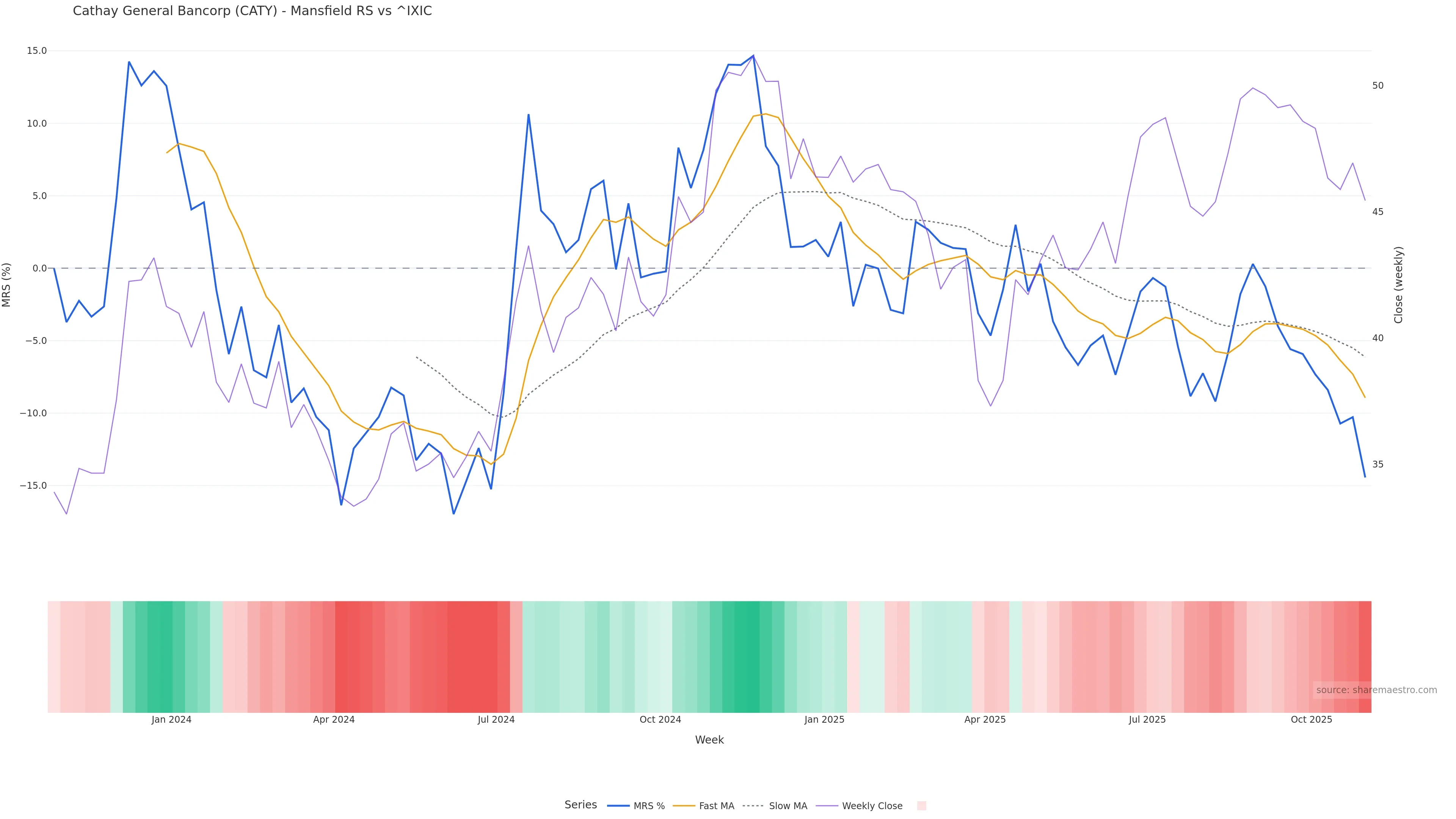 This week: relative strength is fading. In practical terms: backdrop leans corrective; rallies face a higher bar for sustainability; bearish divergence lowers the quality of upside attempts.